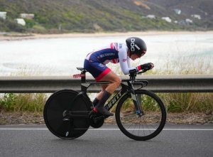 Gloucestershire-based Dewhurst covered the 22.7-kilometre out and back coastal course in 39-23 to win by just over a minute. And she almost added the road race title to it, leading into the final few miles before being caught and settling for second.